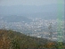 岩の上からの眺望。左上の黒い部分が信夫山。市街地が一望のもとである。