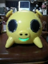 耳にツイーター、目がスコーカ―、底面にウーファーがついています。耳たぶにタッチ式ボリュウムコントロールがついてます。(I-piglet)