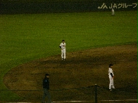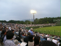 福島の県営あづま球場は天然芝、内野は土。向かって照明の下のレフトスタンドに、5回塩崎のライナー性のホームランが飛び込んだ。球場はほぼ満員。ただ、場内アナウンスが無かったので、なんだか、地方の高校野球より何をやっているのか判らなかった。普通は、「4ばーん、イスンヒョプ」などというのだろうとは思っていたのだが、最近は変わったのだろうか?