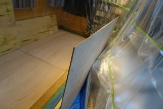 1.遮音シートの張り込み。パネルと内装材の間に、ビニール系の遮音シ−トが張られた。これは気密性をあげるシート。遮音効果は???